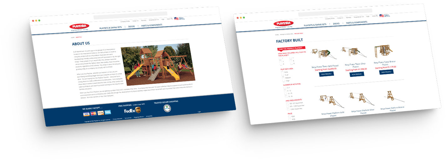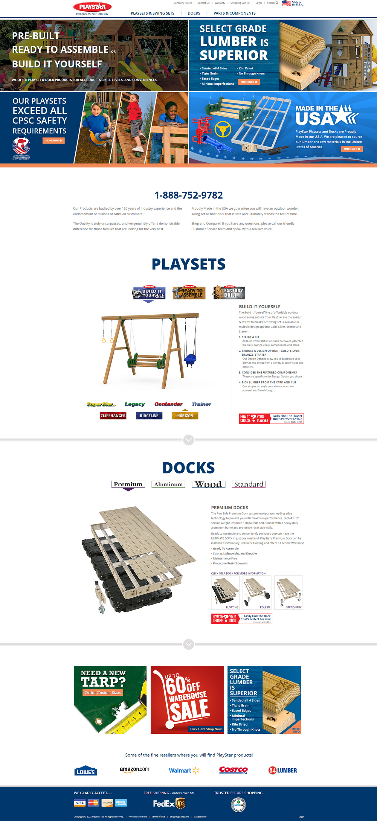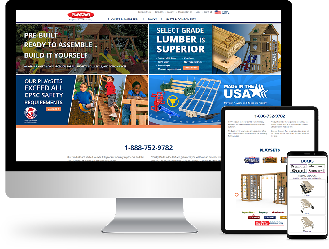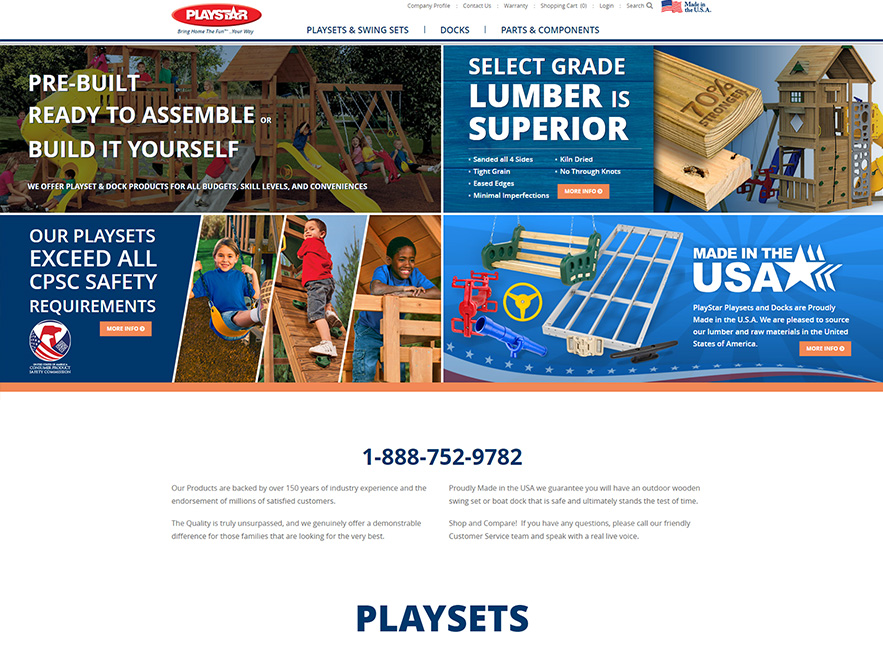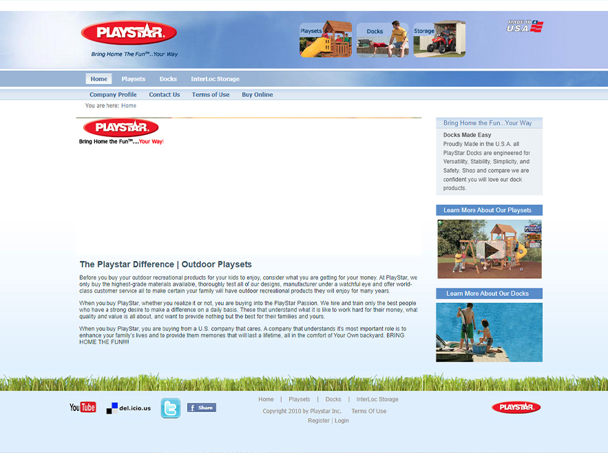 Founded in 1998, PlayStar Inc, manufactures a complete line of children's backyard play equipment, residential boat docks and outdoor storage. When you buy PlayStar, whether you realize it or not, you are buying into something bigger than just a wooden swing set, boat dock or resin storage building. You are buying into the PlayStar Passion. We hire and train only the best people who have a strong desire to make a difference on a daily basis. Those that understand what it is like to work hard for their money, what quality and value is all about, and want to provide nothing but the best for their families.