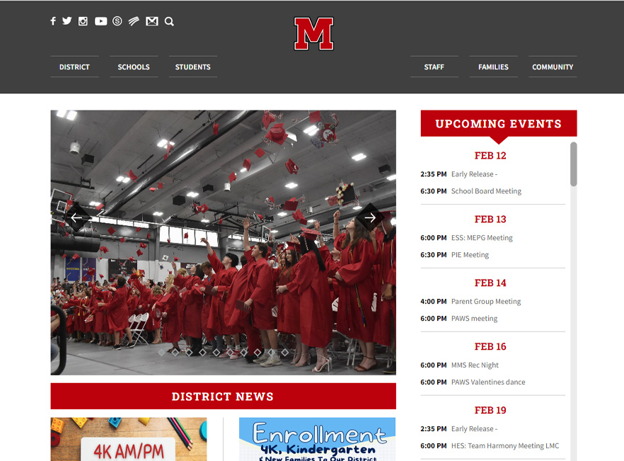 One of the biggest needs of the district was better calendar functionality, making it easier for the students and parents to find events. Using the plugin Events Manager on WordPress, we were able to implement a calendar with different categories of events, the ability to subscribe to calendars, and admin functions for simple updating of events. Additionally, the district needed an online staff directory, which we were able to create through a Directory plugin, allowing for ease of use in adding staff members, headshots, and applying schools and positions to profiles.