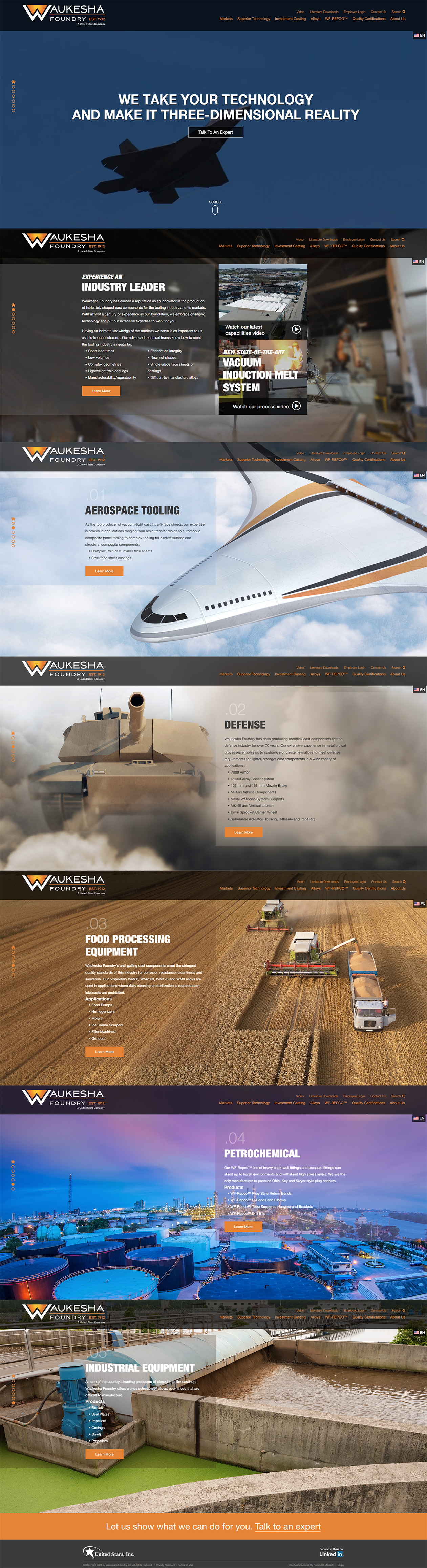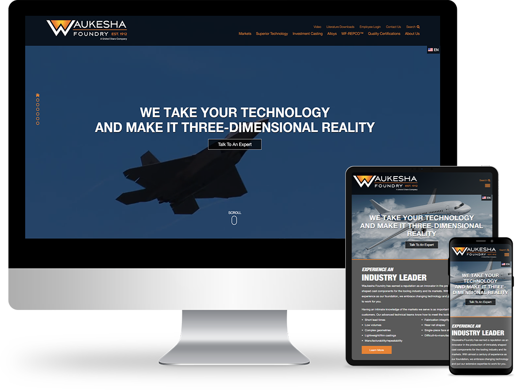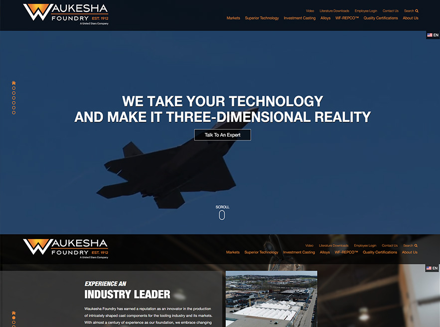 By relying less on capabilities and shifting the focus of the homepage content toward sectors served, Waukesha Foundry is better positioned to attract customers based on their search patterns. The new site is much more dynamic and better reflects their cutting-edge products and technology.